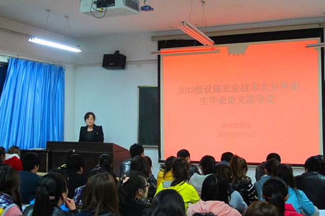 根據(jù)設(shè)施農(nóng)業(yè)技術(shù)專業(yè)人才培養(yǎng)方案要求,結(jié)合國(guó)家骨干校項(xiàng)目建設(shè)任務(wù),為了提高2014屆設(shè)施農(nóng)業(yè)技術(shù)專業(yè)畢業(yè)生畢業(yè)論文(設(shè)計(jì))質(zhì)量,農(nóng)業(yè)經(jīng)濟(jì)系于3月16日晚召開(kāi)了“2014屆大專畢業(yè)生畢業(yè)論文指導(dǎo)會(huì)”。全系教師及2012級(jí)設(shè)施農(nóng)業(yè)技術(shù)大專(1)、(2)班81名同學(xué)參加了本次會(huì)議。