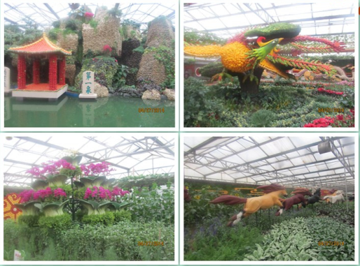 蔬菜園藝廳為優(yōu)秀蔬菜景觀的集中營,五顏六色的種子、蔬菜、花卉及其他普通材料,在園藝師的手中演繹成氣勢恢弘、雄偉壯觀、形神兼?zhèn)洹⒁馊ぬ斐傻乃囆g(shù)精品。其中主景點“美麗中國”將大明湖牌坊、蓬萊閣、五岳獨尊、孔子雕像、象鼻山、黃果樹瀑布、云岡石窟、嘉峪關(guān)、長白山瀑 布……30余個國內(nèi)知名人文及自然景點穿插其中。整個景點從遠(yuǎn)處看去,把祖國的大好河山、現(xiàn)代科技和鮮活蔬菜有機融為一體,凸顯著“綠色·科技·未來”的主題。
