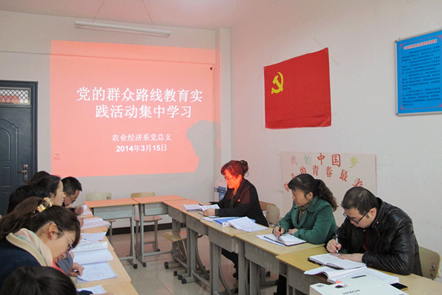 14年3月15日,農(nóng)業(yè)經(jīng)濟系組織全體黨員及教師進行了黨的群眾路線教育實踐活動集中學習。依據(jù)學習安排主要對《黨的群眾路線教育實踐活動學習文件選編》、《厲行節(jié)約、反對浪費----重要論述摘編》、《論群眾路線----重要論述摘編》等內(nèi)容進行了學習。