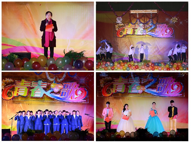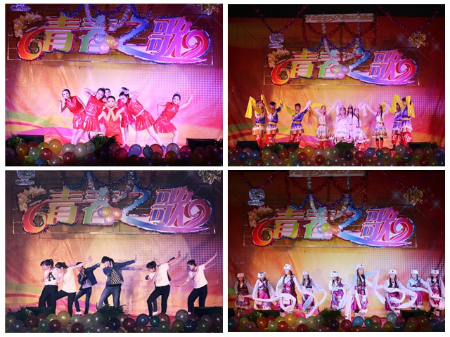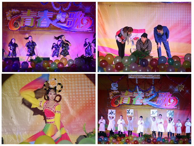 本次晚會以“青春之歌,歡送畢業(yè)生”為主題,共表演了17個精彩節(jié)目。晚上7點整,開場舞《倍兒爽》、《小蘋果》為整臺晚會拉開了帷幕。在晚會上,《格桑拉》、《吉祥謠》及《青春踢踏》等少數(shù)民族舞蹈,體現(xiàn)了五十六個民族大團結,互相共融的感情;《感恩的心》表達了學生們對老師一年來孜孜不倦、淳淳教誨的感恩之情;《天下父母心》表達了對父母的養(yǎng)育之恩的感謝;舞蹈《驚鴻舞》和《The boys》等給觀眾帶來了別樣的風情,展現(xiàn)出青年學子活力青春;大型舞蹈《致那些年逝去的青春》和《夢回敦煌》帶給觀眾視覺盛宴;舞蹈《串燒》結合了幾首近幾年流行的膾炙人口的歌曲,將不同舞蹈串燒一起。青春現(xiàn)代舞《Expect》將整個晚會推向高潮。
