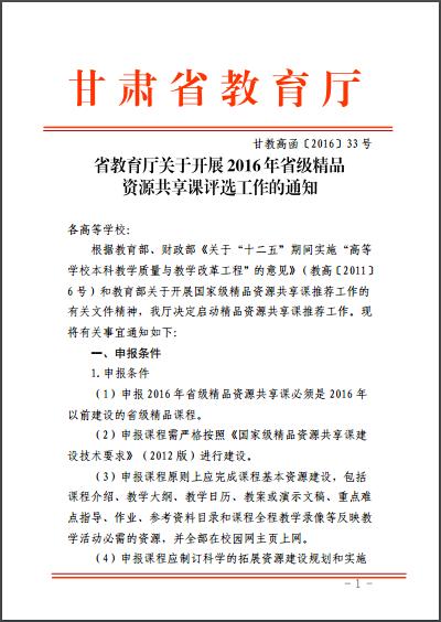 省教育廳關于開展2016年省級精品資源共享課評選工作的通知