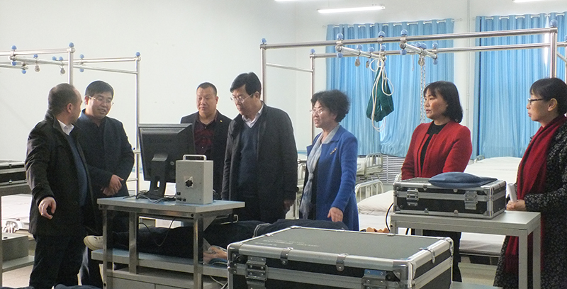 毛校長一行參觀了護(hù)理系的生命科技館、機(jī)能實(shí)訓(xùn)室、基護(hù)實(shí)訓(xùn)室、內(nèi)外科實(shí)訓(xùn)室等醫(yī)學(xué)類實(shí)訓(xùn)室,詳細(xì)了解了實(shí)驗(yàn)設(shè)備的運(yùn)行情況和實(shí)驗(yàn)實(shí)訓(xùn)課程的教學(xué)管理模式。潘玉華向來賓們介紹了學(xué)院申辦臨床醫(yī)學(xué)專業(yè)的進(jìn)展,以及我院實(shí)訓(xùn)課程建設(shè)和籌建實(shí)驗(yàn)實(shí)訓(xùn)室取得的成果。