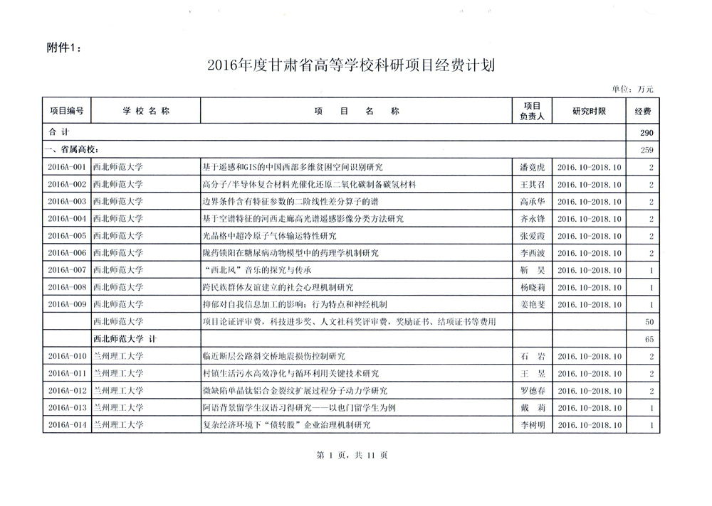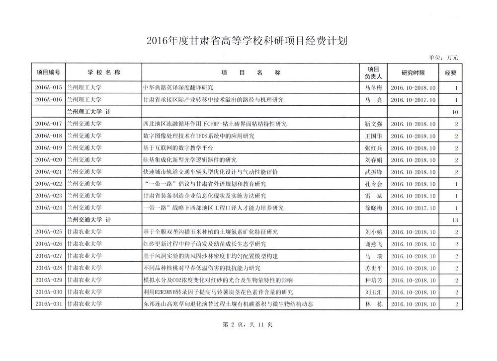 轉(zhuǎn)發(fā)甘肅省財(cái)政廳 教育廳文件 關(guān)于下達(dá)2016年度甘肅省高等學(xué)校科研項(xiàng)目自…