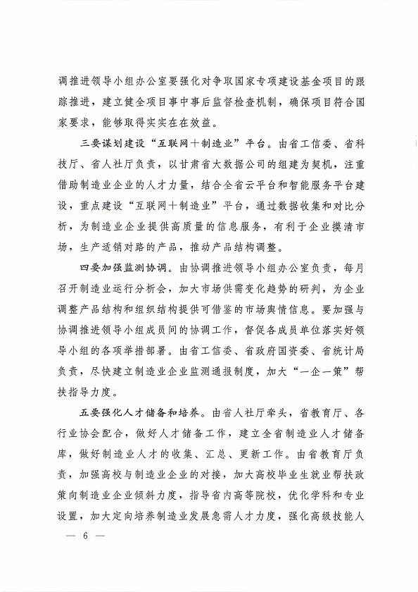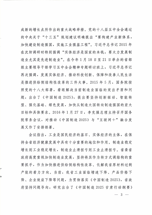 甘肅省教育廳關(guān)于轉(zhuǎn)發(fā)《中國(guó)制造 2025 甘肅行動(dòng)綱要協(xié)調(diào)推進(jìn)領(lǐng)導(dǎo)小組第一次會(huì)議紀(jì)要》的通知