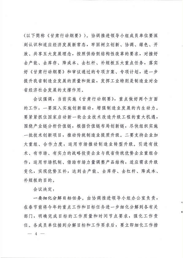 附件:中國(guó)制造 2025 甘肅行動(dòng)綱要協(xié)調(diào)推進(jìn)領(lǐng)導(dǎo)小組第一次會(huì)議紀(jì)要