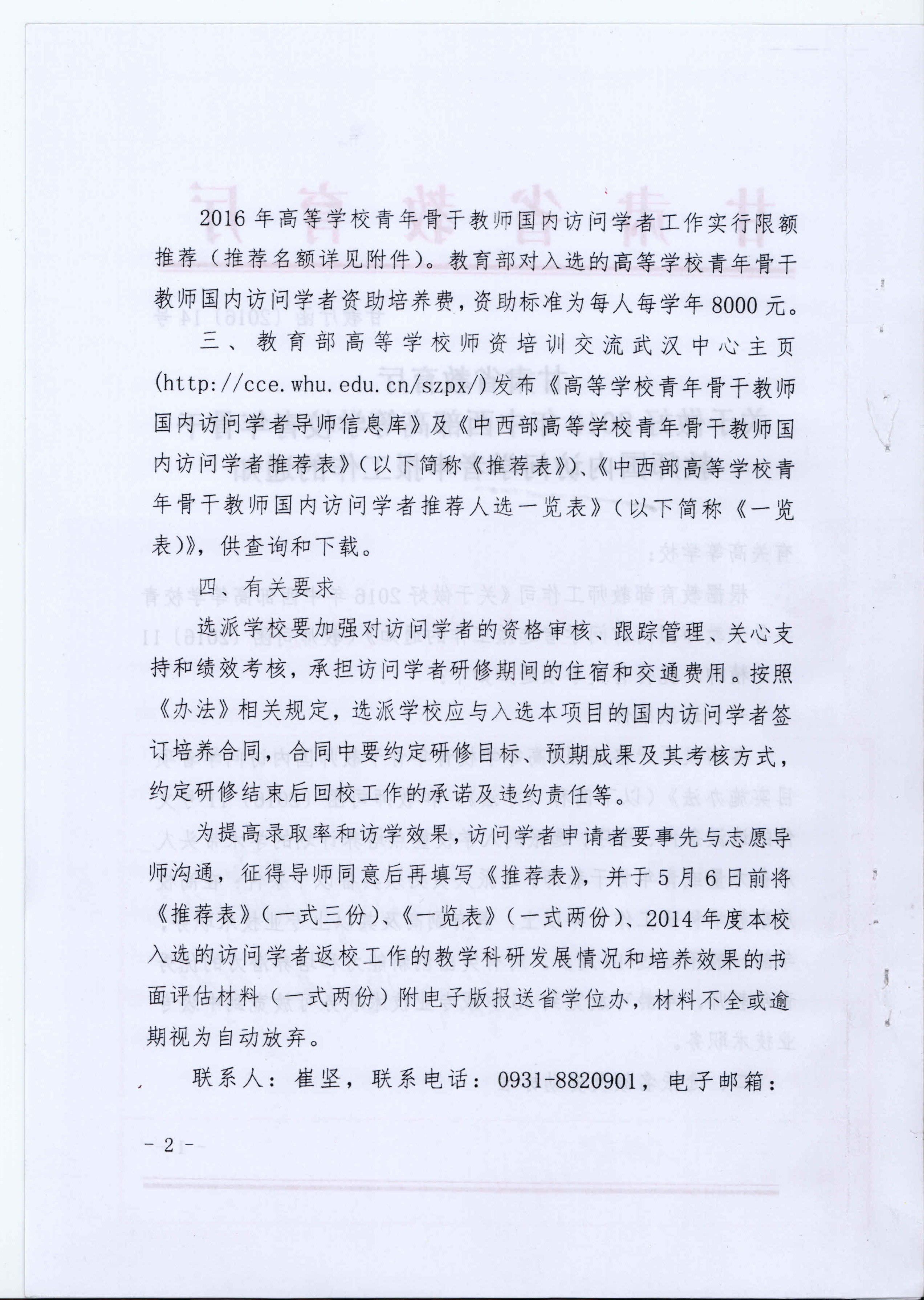 關(guān)于做好2016年青年骨干教師國(guó)內(nèi)訪問(wèn)學(xué)者申報(bào)工作的通知