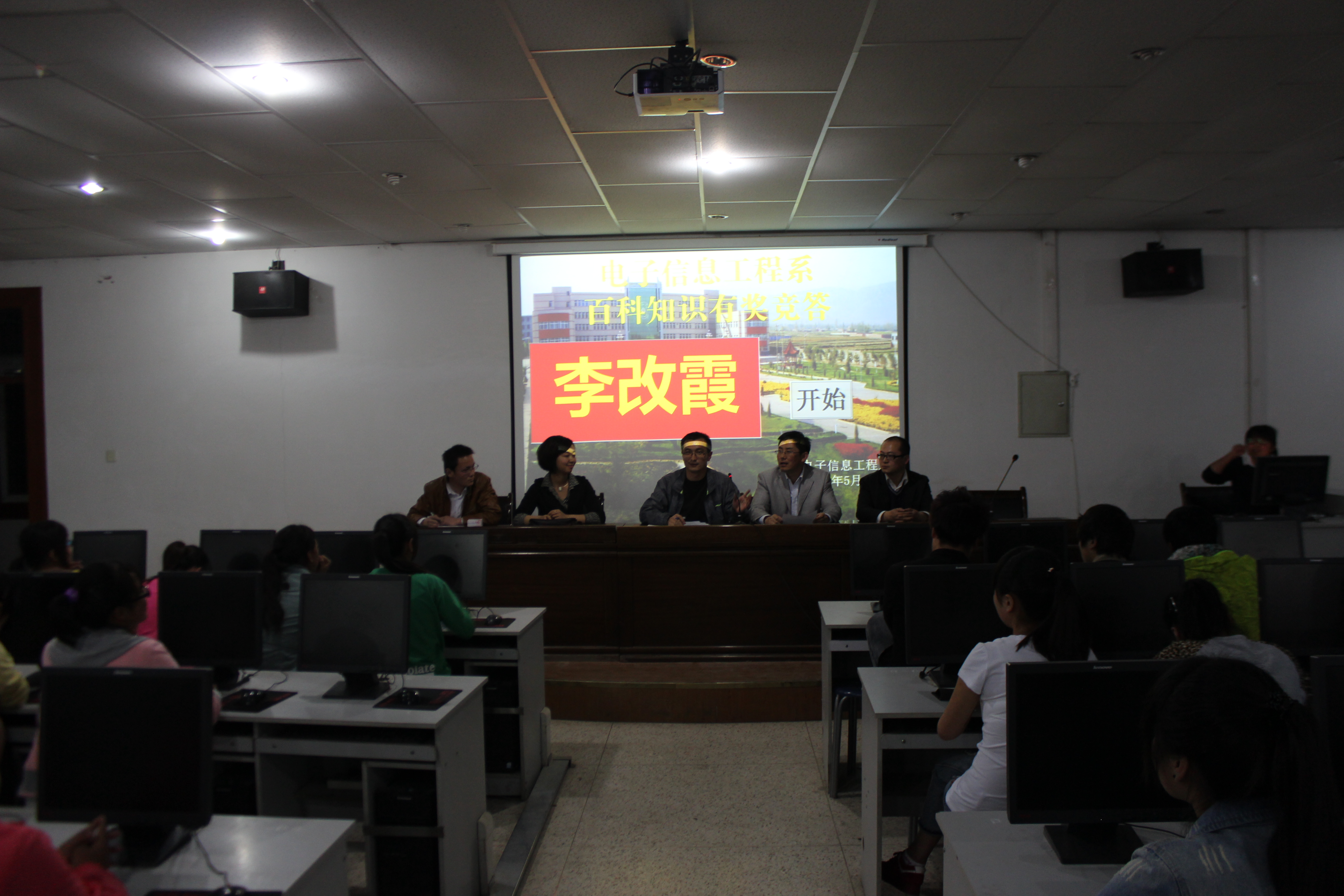為提高大學生的綜合素質(zhì),拓展大學生視野,豐富大學生活。電子信息工程系團總支于5月19日晚在學院十號機房舉辦了百科知識有獎競答活動。系輔導(dǎo)員、團總支書記、班主任及200多名在校學生和參加了活動。