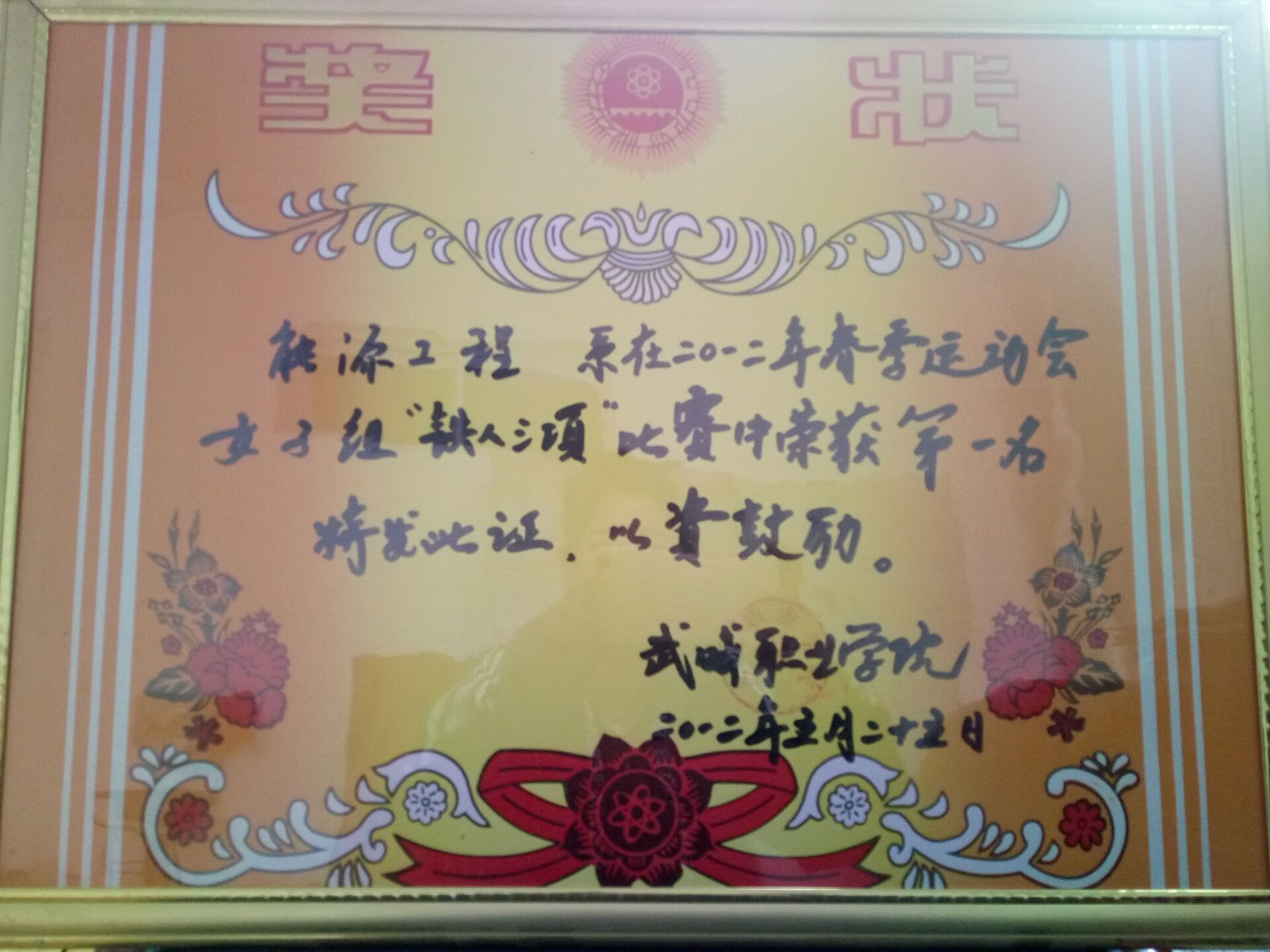 我系代表隊在2012年春季運動會女子組“鐵人三項”比賽中榮獲第一名獎