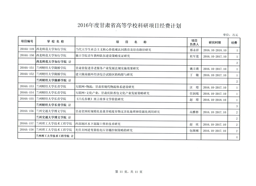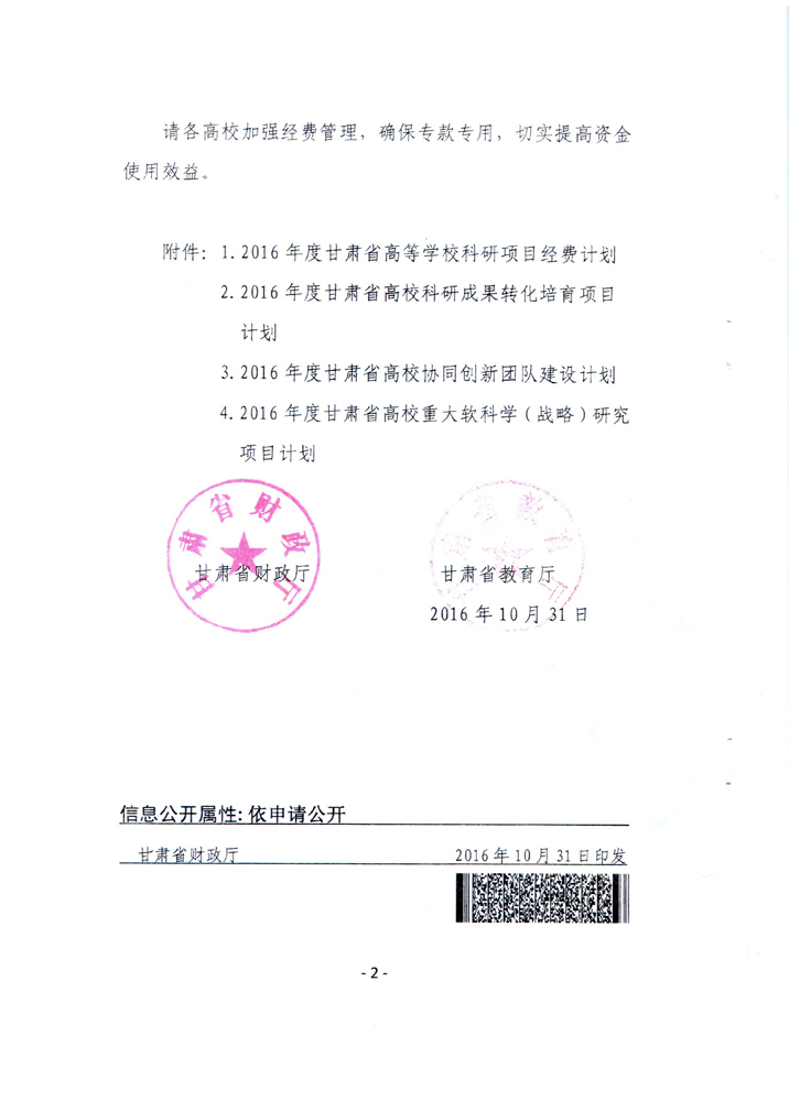甘肅省教育廳關(guān)于下達(dá)2016年度甘肅省高等學(xué)校科研項(xiàng)目自籌經(jīng)費(fèi)項(xiàng)目的通知