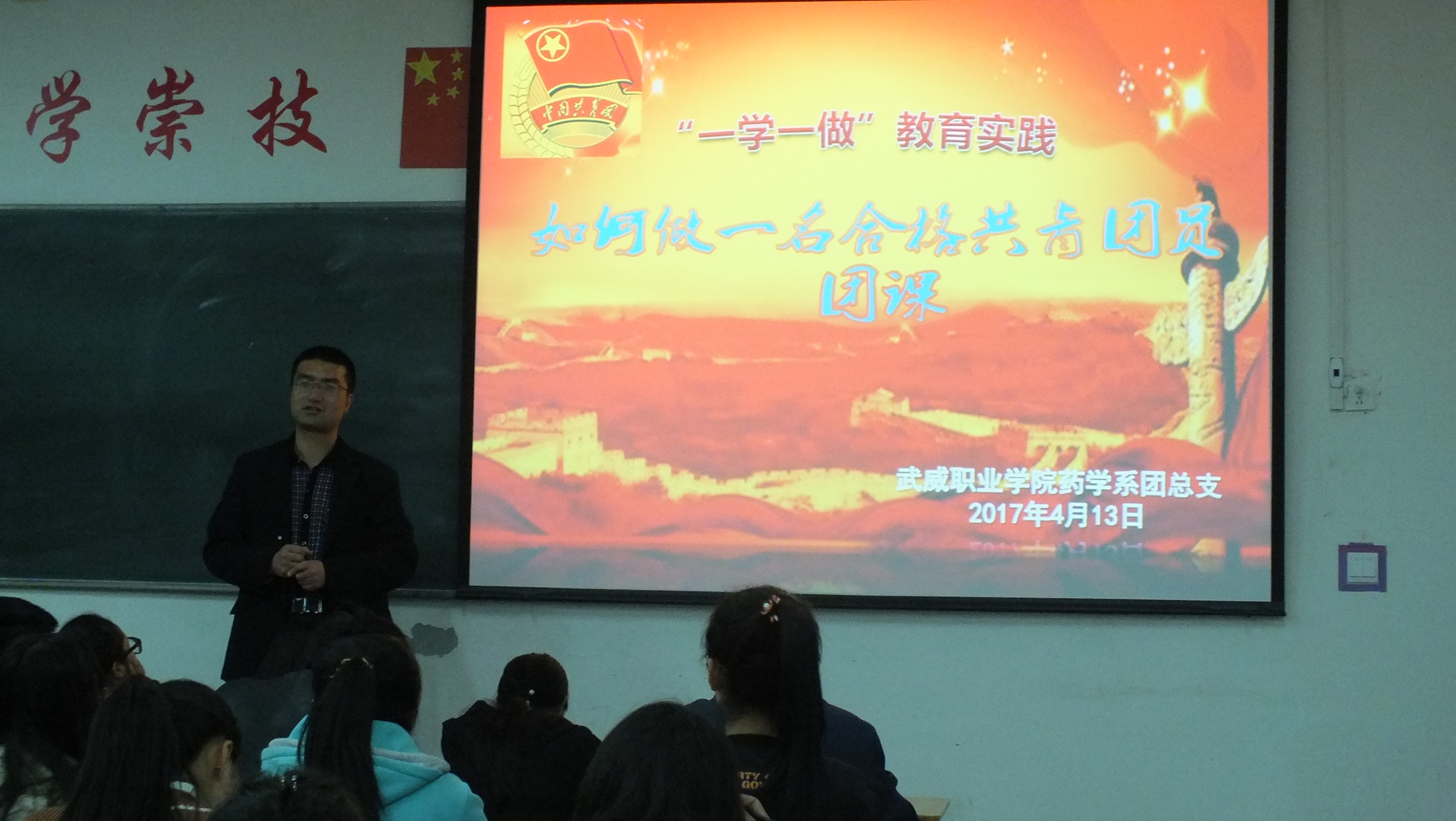 為進(jìn)一步加強(qiáng)“學(xué)習(xí)總書記講話,做合格共青團(tuán)員”實(shí)踐學(xué)習(xí)教育效果,藥學(xué)系團(tuán)總支在系黨總支的領(lǐng)導(dǎo)下,按照學(xué)院團(tuán)委“一學(xué)一做”教育實(shí)踐安排,于4月13日晚在明遠(yuǎn)樓501教室組織開展了“如何做一名合格共青團(tuán)員”主題團(tuán)課,系團(tuán)總支書記陳輝生組織全系團(tuán)干部和團(tuán)員代表參加了此次主題團(tuán)課。