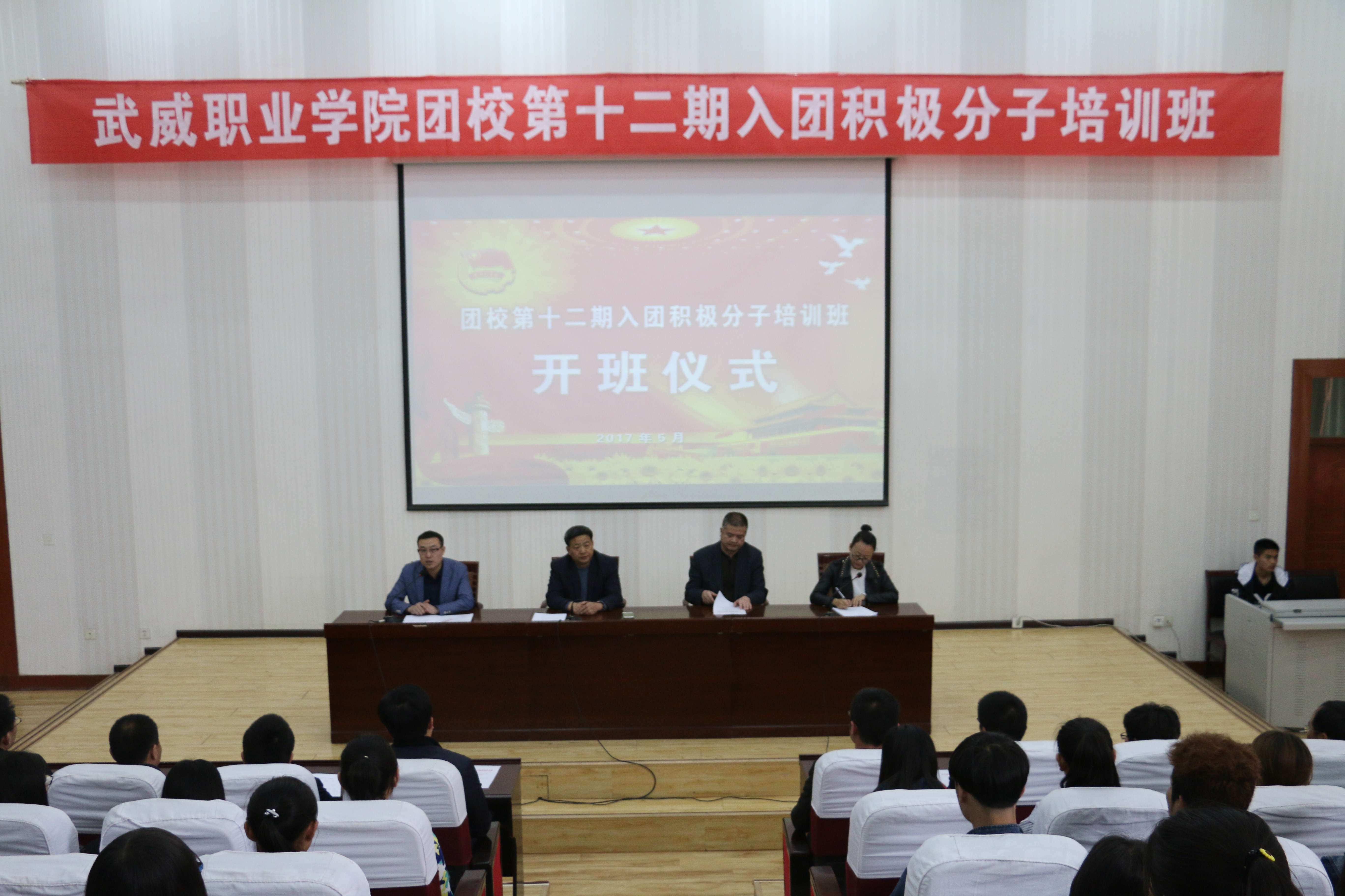 4月25日,武威職業(yè)學院團校第十二期入團積極分子培訓班開班儀式在正德廳舉行。黨委副書記趙明出席儀式并講話,學生工作處處長王守云出席儀式,各系團總支書記和200名入團積極分子參加開班儀式。