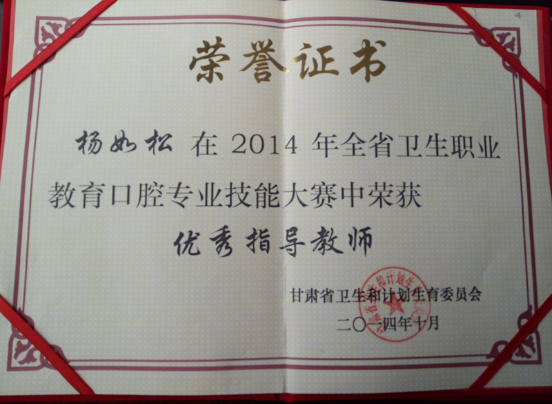 楊如松榮獲2014年全省衛(wèi)生職業(yè)教育口腔專業(yè)技能大賽優(yōu)秀指導(dǎo)教師