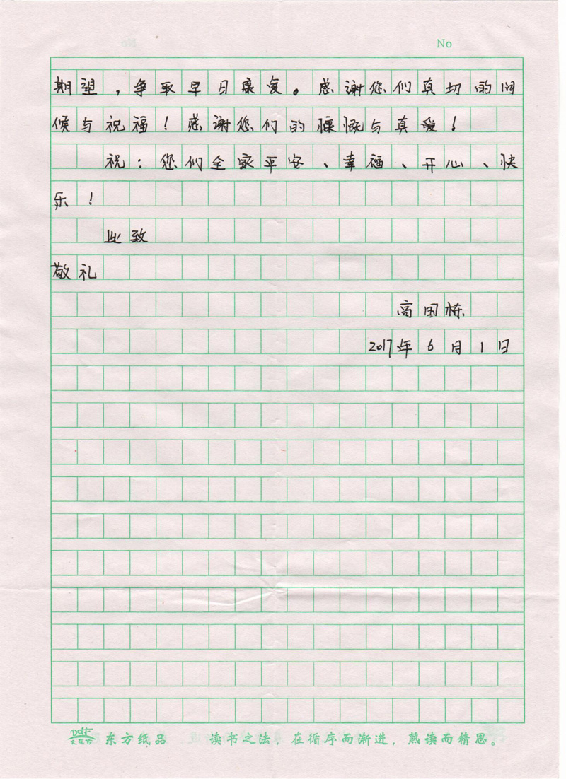 高國(guó)棟同學(xué)致全院師生的感謝信