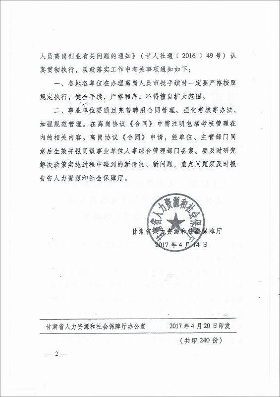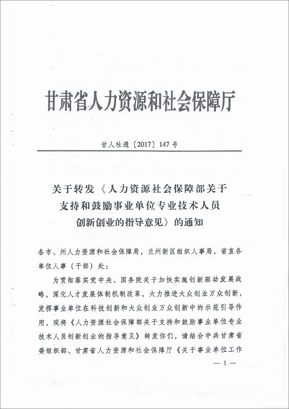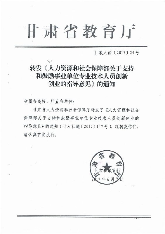 甘肅省教育廳轉(zhuǎn)發(fā)《人力資源和社會(huì)保障部關(guān)于支持和鼓勵(lì)事業(yè)單位專業(yè)技術(shù)人員創(chuàng)新創(chuàng)業(yè)的指導(dǎo)意見》的通知
