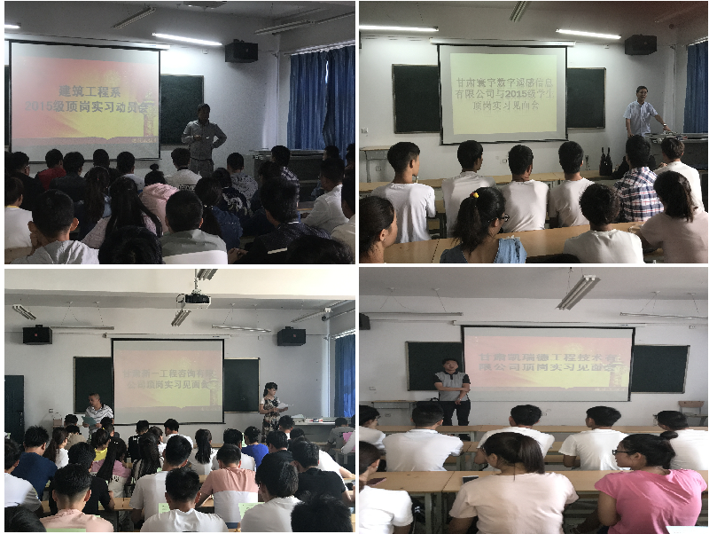 6月8日至6月16日,甘肅寰宇數(shù)字遙感信息有限公司、甘肅新一工程咨詢有限公司、國誠集團(tuán)、蘭州凱瑞德工程有限公司、武威盛大集團(tuán)等實(shí)習(xí)接收單位,派專人來校,舉辦企業(yè)宣講會,詳細(xì)地介紹了用人單位的管理制度、日常生活、工作崗位、薪酬待遇等,并與系上洽談了學(xué)生頂崗實(shí)習(xí)合作辦法、責(zé)任義務(wù)、安全保障、就業(yè)等涉及學(xué)生諸方面的合作細(xì)節(jié)。