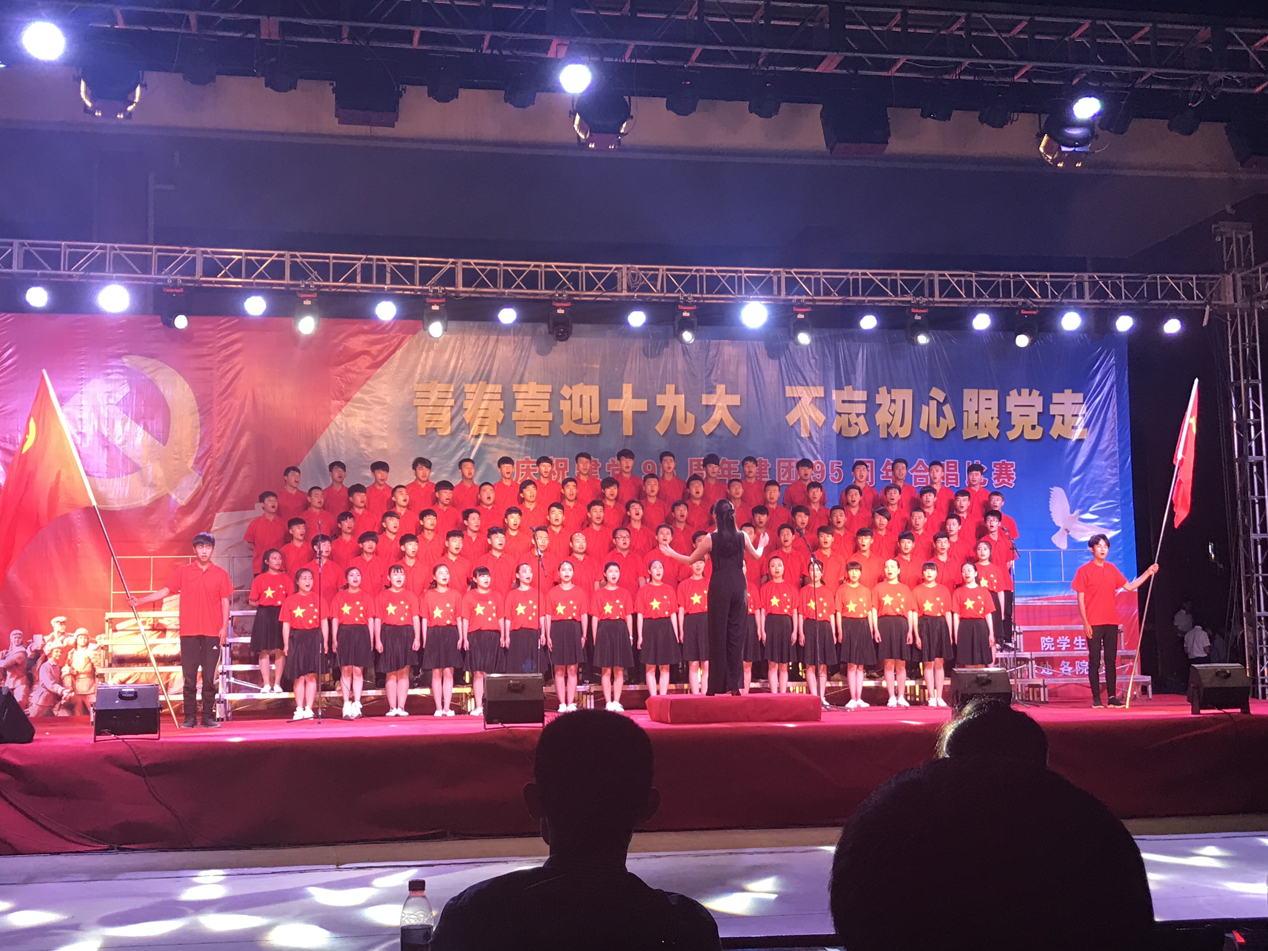 在持續(xù)半個月的合唱訓(xùn)練中,我系參加大合唱的90名同學(xué)和6位老師充分的準(zhǔn)備,以積極飽滿的態(tài)度投入到本次大合唱比賽的訓(xùn)練中,付出了大量的精力,放棄了許多休息時間,展現(xiàn)出了不怕吃苦,堅持不懈,自強自信的精神。比賽中,隊員們齊聚在黨旗下,著裝整齊,精神飽滿,以高昂的熱情、嘹亮的嗓音唱出了對黨的擁戴,對未來的憧憬,贏得了評委及現(xiàn)場觀眾的熱烈掌聲。