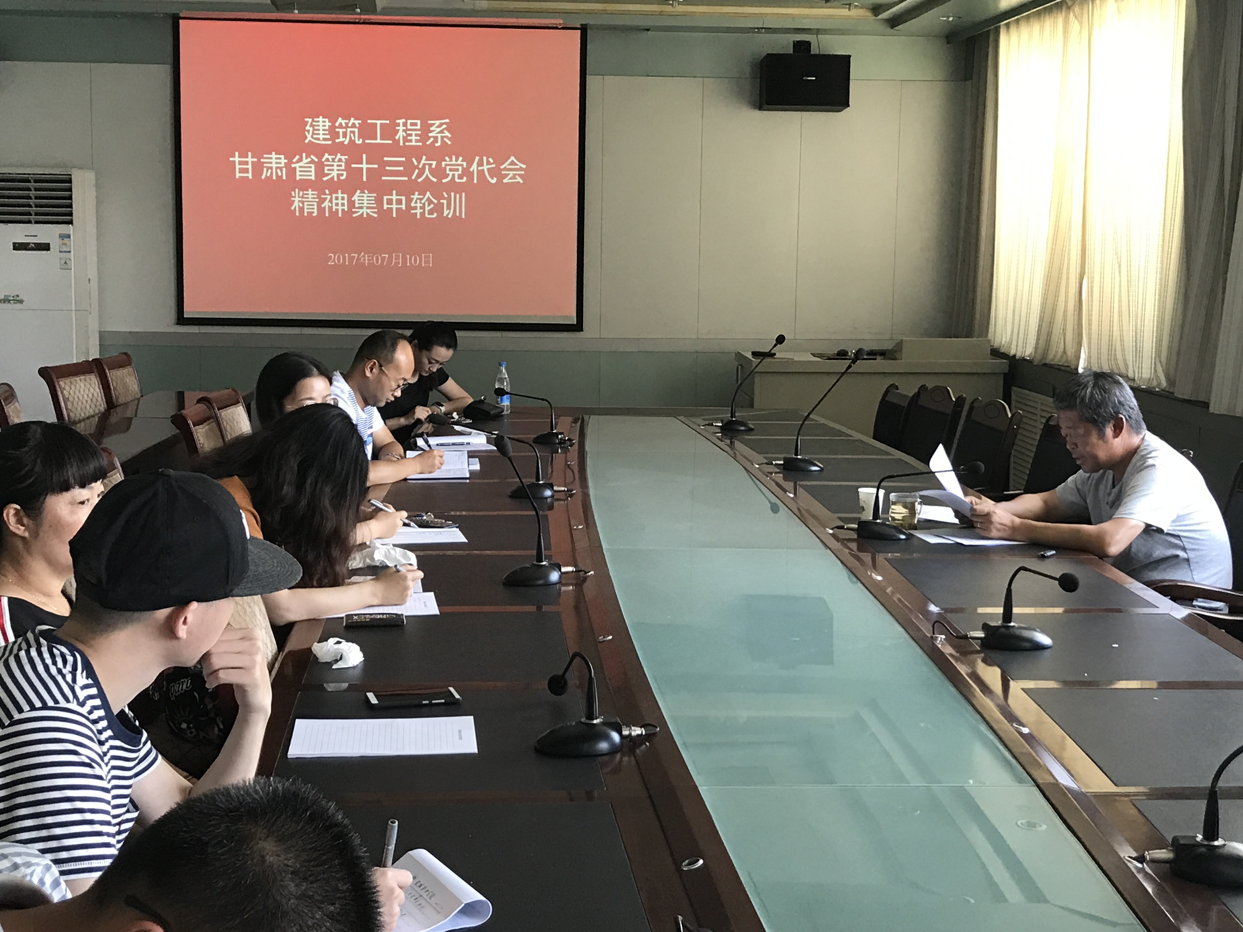 為學(xué)習(xí)貫徹落實好中國共產(chǎn)黨甘肅省第十三次代表大會精神和市委四屆四次全體(擴大)會議精神,根據(jù)學(xué)院黨委安排,7月10日—12日,建筑工程系黨總支組織全體黨員、專業(yè)教師17人進行了集中輪訓(xùn)。