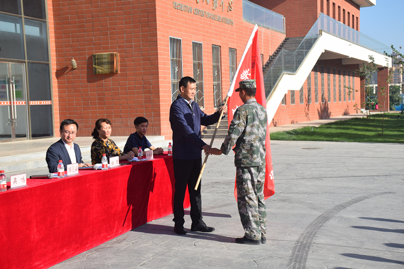 動員大會在莊嚴的國歌聲中開始,學院學工辦負責人劉菊萍就訓練時間、訓練紀律要求等方面做了具體的安排。軍訓教官代表王雯和新生代表張林旺分別發(fā)言表態(tài)。湯旻安代表學院在會上作了軍訓動員講話。他強調,同學們要在軍訓過程中要提高認識、端正態(tài)度,真正把軍訓作為大學生的一門必修課;刻苦訓練、認真學習,在訓練中樹立不怕苦、不怕累的精神,確保訓練效果;嚴格要求、強化管理,確保軍訓工作緊張、有序、安全;講文明樹新風、除陋習展形象,樹立良好風尚,展示新時代大學生的風采;以人為本、科學施訓,確保軍訓工作取得實效。最后,由湯旻安向軍訓教官授旗,標志著2017級新生軍訓正式拉開帷幕。