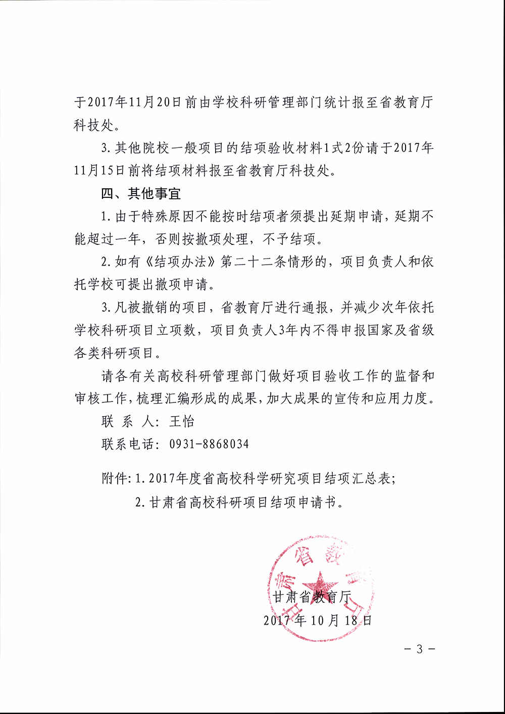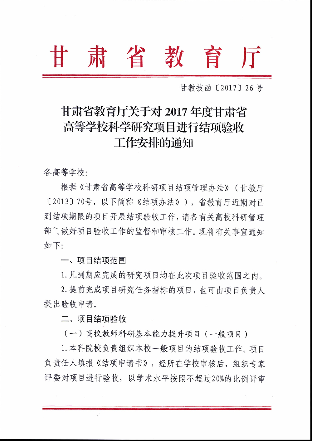 轉(zhuǎn)發(fā)甘肅省教育廳關(guān)于對2017年度甘肅省高等學(xué)??茖W(xué)研究項目進行結(jié)項驗收工作安排的通知