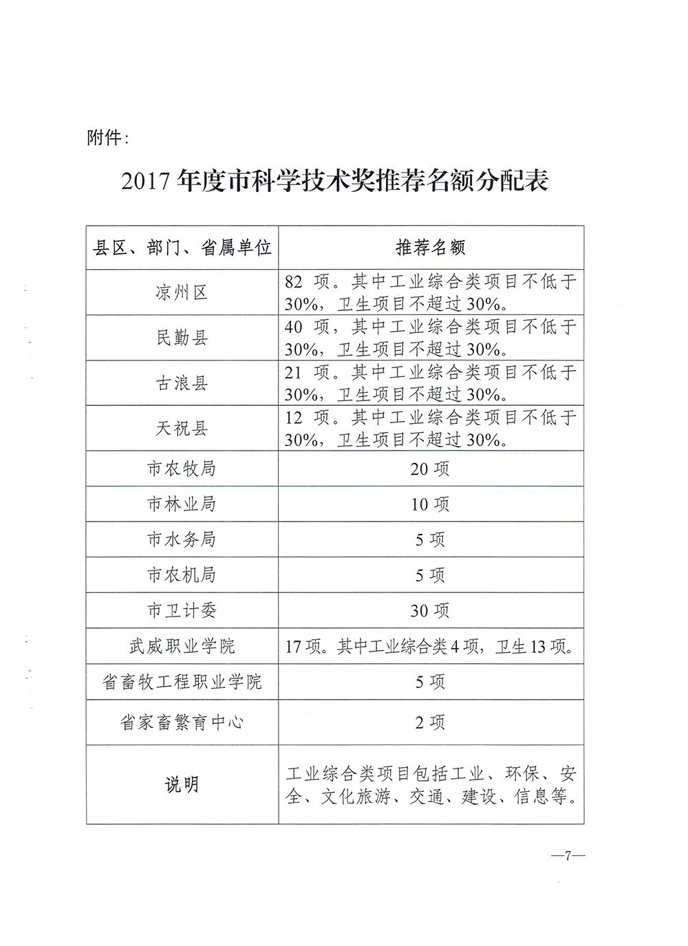 轉(zhuǎn)發(fā)武威市科學(xué)技術(shù)局關(guān)于做好2017年度市科學(xué)技術(shù)獎(jiǎng)推薦工作的通知