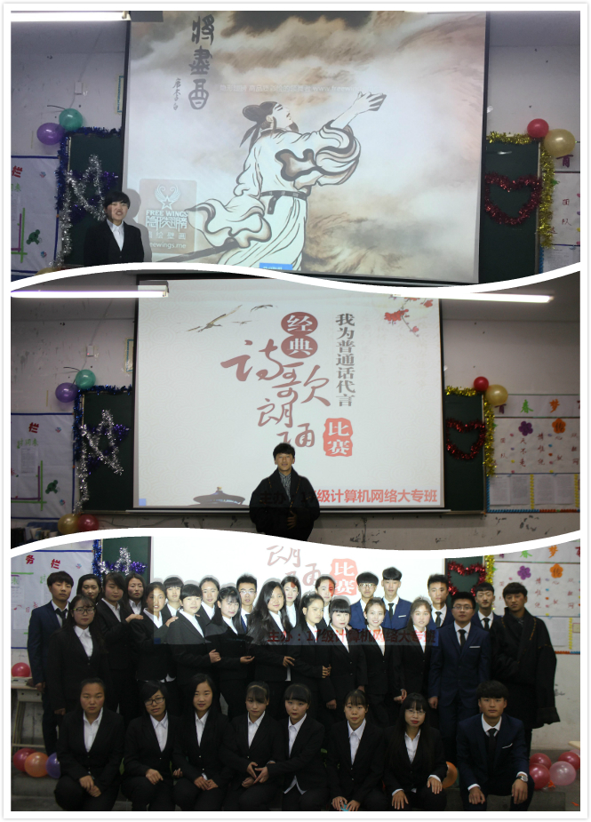 為了弘揚中華民族傳統(tǒng)文化,倡導學生立德修身,培育愛國情操,2017年11月20日,17級計算機網(wǎng)絡(luò)大專班舉辦了主題為“傳承中華文化,共筑青春夢想”經(jīng)典詩歌誦讀比賽。