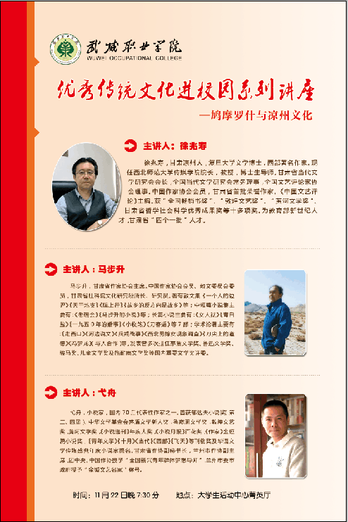 武威職業(yè)學(xué)院優(yōu)秀傳統(tǒng)文化進校園系列講座今晚開講