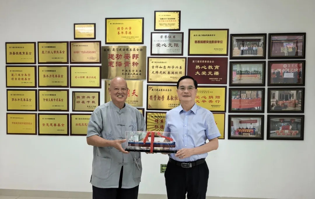 24日下午,集美大學(xué)黨委書記邱偉杰、校辦主任黃海宏、校董辦主任呂嫻一行蒞臨廈門建安慈善基金會,拜訪校董孫吉龍先生。孫吉龍先生對邱書記一行的到來表示熱烈歡迎。